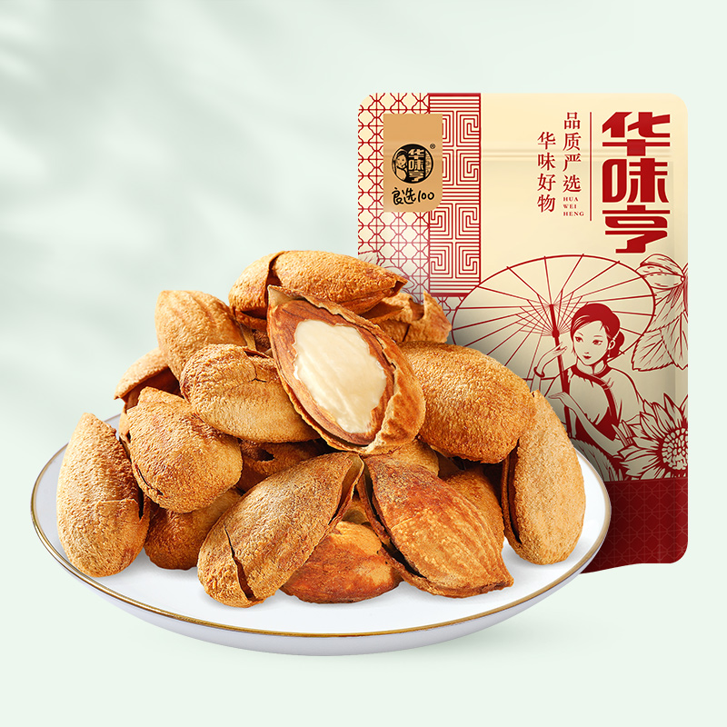 华味亨 盐焗巴旦木果实饱满,酥脆爽口,自然开口率高,颗粒精选好吃易剥,咸味适中,醇厚入味,原色原味,醇香中略带甜味,轻轻一捏,肥硕饱满果仁,干爽不粘手,破壳而出清香气息。规格:500g